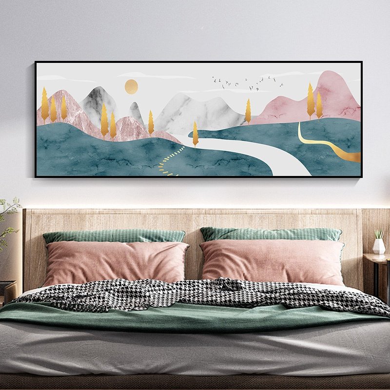 房间床头装饰画横幅北欧主人房主卧室背景墙挂画w次卧客V卧主卧..热门设计联盟服务商