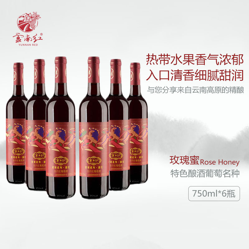 云南红 葡萄酒红酒星级全汁甜红整箱6瓶红酒国产弥勒云南红酒庄热门设计联盟服务商