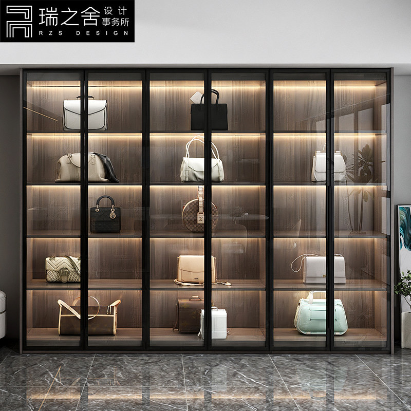意式包包柜实木轻奢风收纳柜家用落地玻璃门展示柜现代简约储物柜热门设计联盟服务商