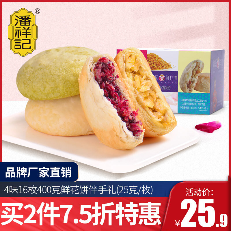 潘祥记鲜花饼云南特产玫瑰饼400g盒装传统糕点零食小吃热门设计联盟服务商