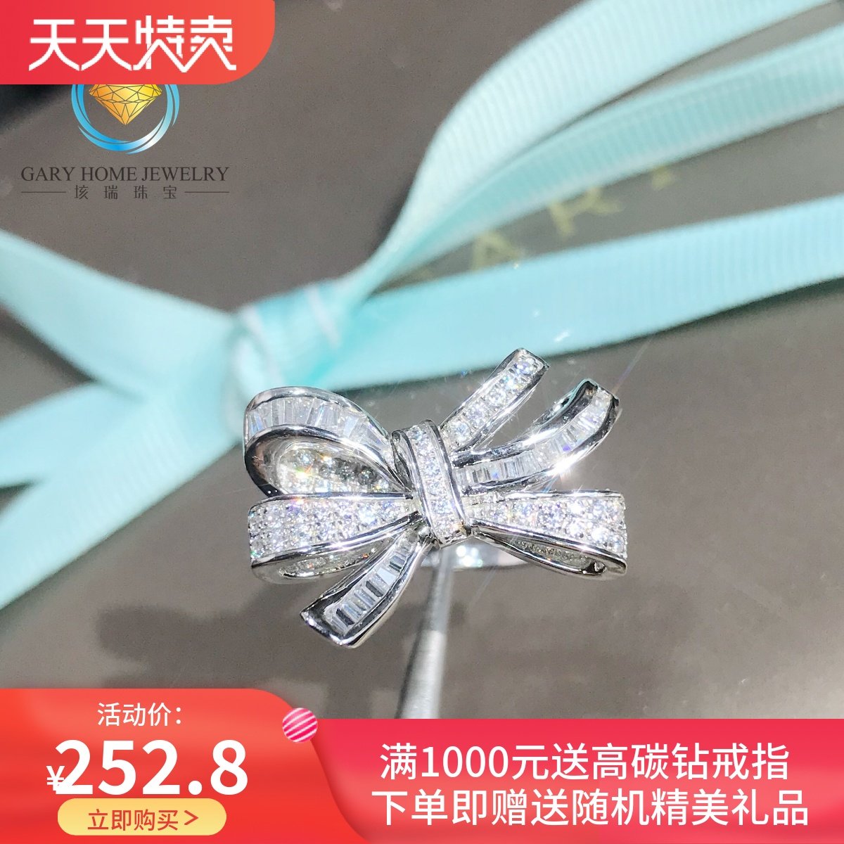 公主风蝴蝶结戒指女 人工梯方钻石小众设计精致纯银镀金镶嵌银饰热门设计联盟服务商